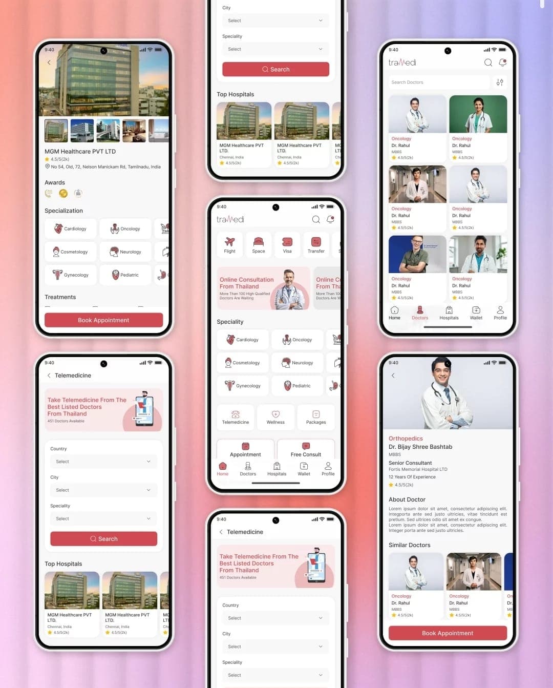 A modern healthcare app that helps you find top doctors and hospitals, book appointments, and access telemedicine services instantly. From online consultations to hospital visits, manage your healthcare needs all in one place.