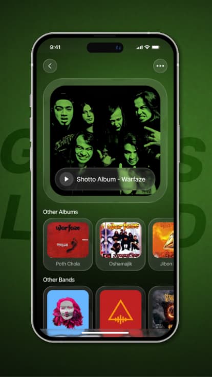 A sleek music app that lets you explore albums, discover bands, and enjoy your favorite tracks in one place. With a modern glass-style interface, your music journey feels fresh, immersive, and intuitive.