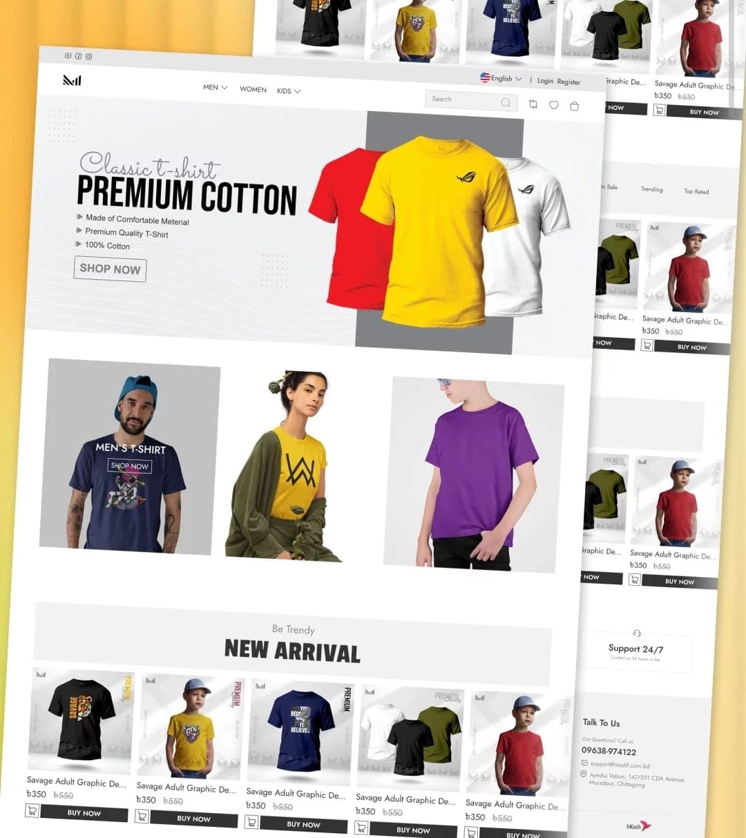 An online clothing store featuring premium cotton t-shirts and trendy apparel for men, women, and kids. With a modern design, easy navigation, and secure checkout, shopping fashion becomes simple and stylish.